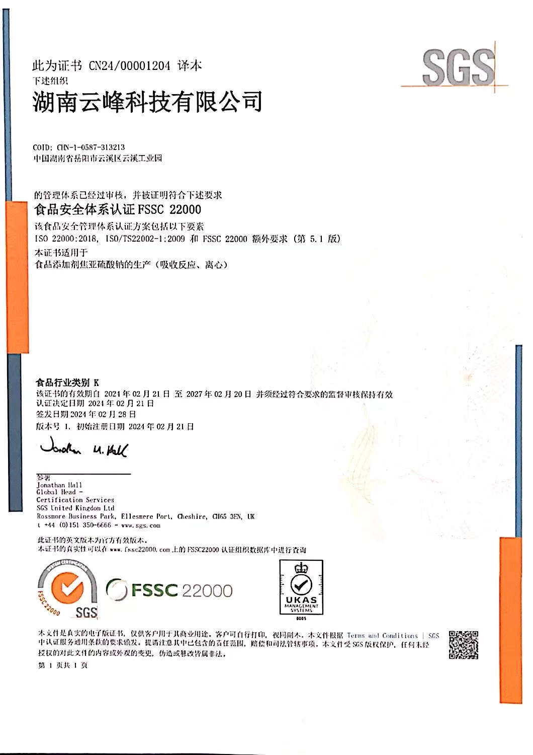 湖南云峰科技有限公司(以下簡稱云峰科技),是由長沙湘岳化工責(zé)任有限公司全額投資以生產(chǎn)焦亞硫酸鈉、亞硫酸鈉等亞硫酸鹽為主營業(yè)務(wù)的高科技企業(yè),具有六十多年的生產(chǎn)歷史,同時(shí)也是焦亞硫酸鈉的國家標(biāo)準(zhǔn)制定參與者。在行業(yè)內(nèi)具有很大的影響力。現(xiàn)有職工八十余人。具有優(yōu)良的經(jīng)營管理團(tuán)隊(duì)和成熟的生產(chǎn)技術(shù)隊(duì)伍。由多位在化學(xué)、化工行業(yè)擁有豐富工作經(jīng)驗(yàn)的工程師及技術(shù)員團(tuán)隊(duì)組建而成,致力于亞硫酸鹽產(chǎn)品的研發(fā)、生產(chǎn)和銷售。2020年公司對(duì)生產(chǎn)設(shè)備、安環(huán)設(shè)施及工業(yè)技術(shù)等進(jìn)行了大規(guī)模的升級(jí)改造,使焦亞硫酸鈉和亞硫酸鈉的生產(chǎn)工藝更加先進(jìn),技術(shù)更成熟,產(chǎn)品質(zhì)量更優(yōu)良。無論在生產(chǎn)工藝、設(shè)備、產(chǎn)品質(zhì)量、清潔生產(chǎn)、節(jié)能環(huán)保和員工素質(zhì)方面,均處于行業(yè)領(lǐng)先地位。公司的主導(dǎo)產(chǎn)品“云峰”牌焦亞硫酸鈉,歷史悠久,深受國內(nèi)外客戶信賴,產(chǎn)品遠(yuǎn)銷東南亞、歐美、非洲、南美洲等20多個(gè)國家和地區(qū),產(chǎn)品供不應(yīng)求。